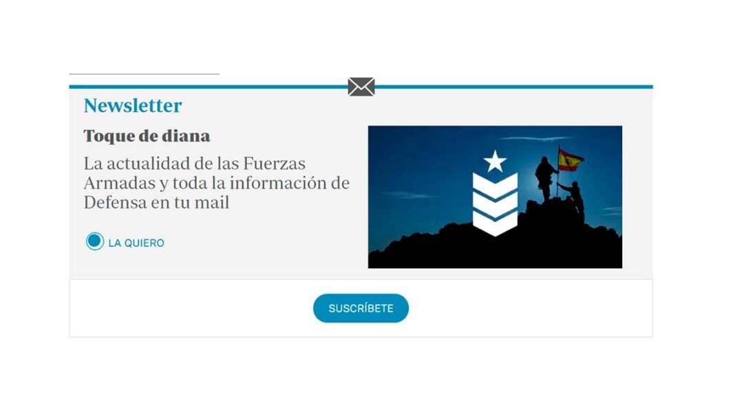 A partir del 29 de noviembre de 2023, los suscriptores recibirán todos los viernes a las ocho de la mañana un resumen de las noticias más importantes de Defensa de la semana. Esta recopilación estará a cargo de la periodista de ABC, Pilar de la Cuesta, quien se encargará de seleccionar y presentar las noticias más relevantes.