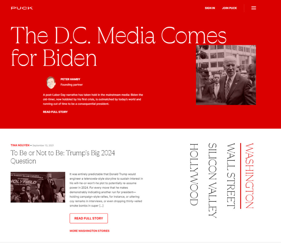 Con el lema Puck empieza donde las noticias acaban, el nuevo medio, que era accesible hasta ahora sólo mediante newsletter, desveló su nueva web, en la que los periodistas-estrella que ha fichado publicarán sus artículos e investigaciones.