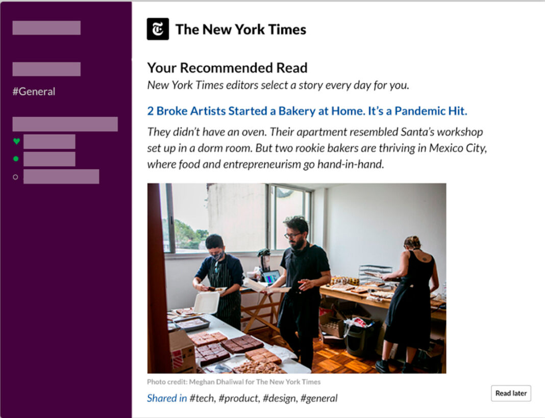 - Que permitiera a los usuarios de Slack guardar artículos del Times para leerlos más tarde