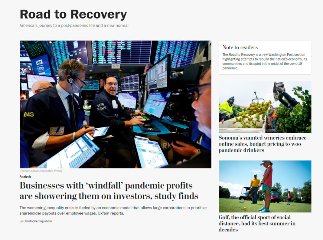 Pero algunos medios sí han captado el mensaje de la audiencia y tratan de aportar algo más que se salga de esa rutina, como por ejemplo The Washington Post. El periódico capitalino lanzó ayer The Road to Recovery, una nueva sección que destaca los intentos de reconstruir la economía de la nación, sus comunidades y su espíritu en medio de la pandemia del covid-19. La sección, para la que además han encontrado patrocinadores (AT&T y JPMorgan Chase), se concentrará en historias de éxito y la lucha de personas y empresas por reparar el daño causado por la enfermedad y el consiguiente cierre económico.