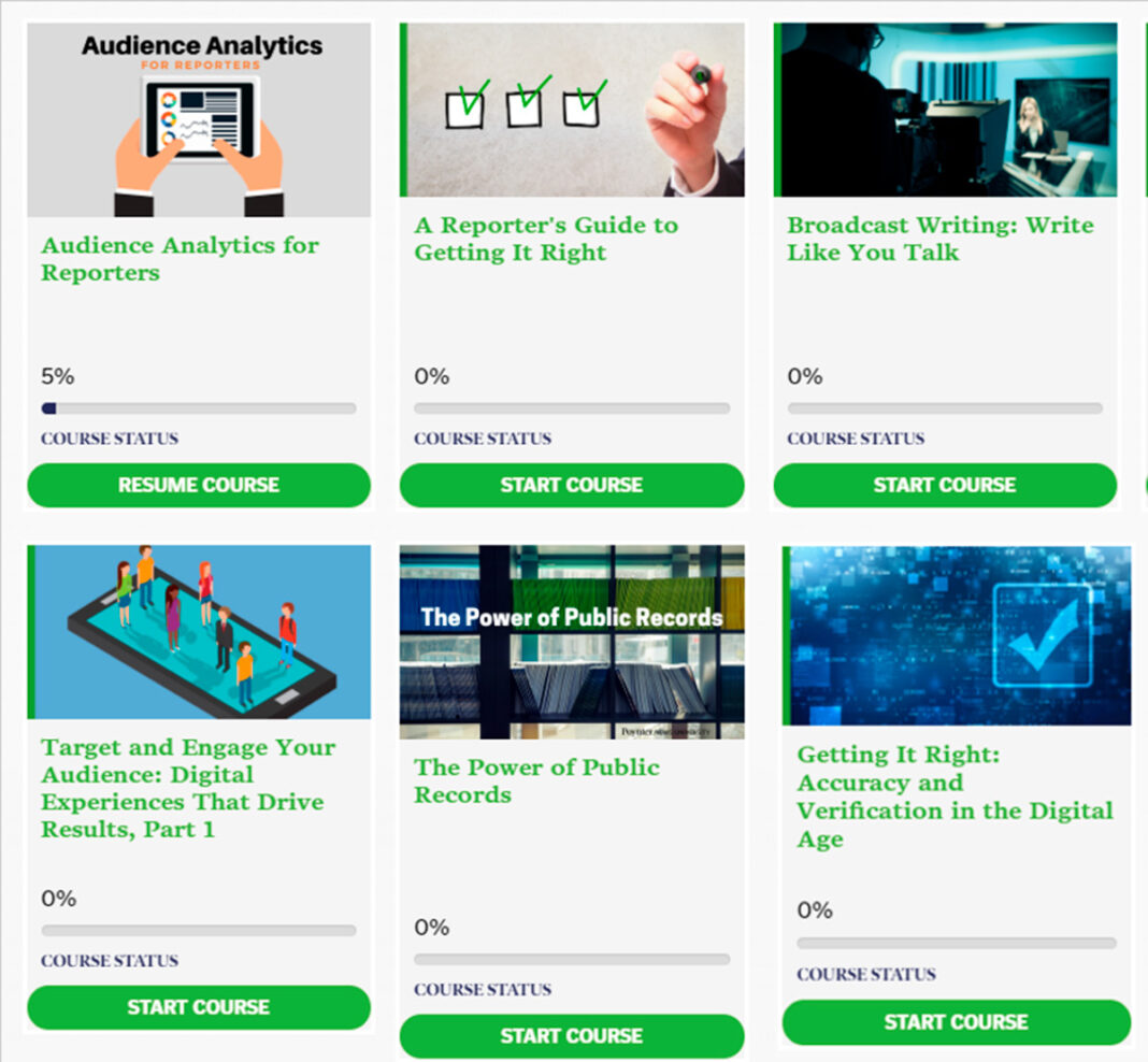 Cursos de Poynter (Requiere registro. Lleve los cursos al carrito y aplique código 20COLLEGE100 para que sean gratuitos.)