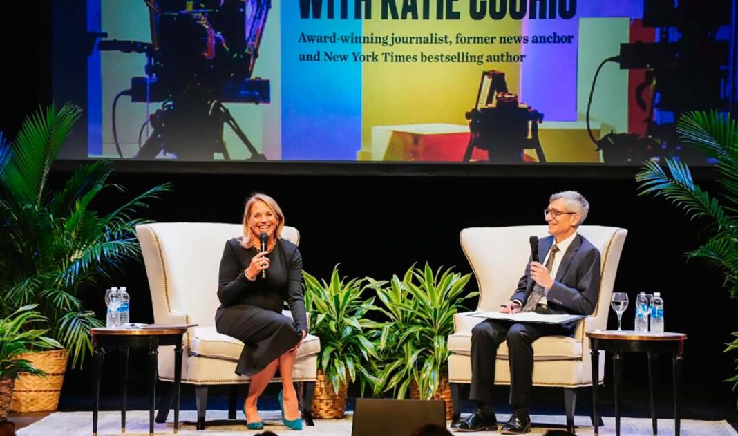 La ex presentadora y editora gerente de “CBS Evening News” y copresentadora del programa “Today” en NBC participó en una charla con el presidente de la universidad, Joseph J. Helble, en la que abordaron una amplia gama de temas relacionados con el periodismo actual, desde la evolución de los medios hasta los desafíos éticos que enfrentan los profesionales de la información en la era digital.