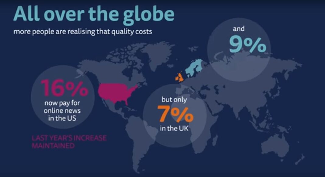 El Digital News Report, del Instituto Reuters, es uno de los informes sobre la industria de los medios de comunicación y el periodismo más seguidos cada año en el panorama internacional. En el informe de este año recogía, por ejemplo, los problemas que atraviesa Facebook, afectada por las inquietudes de los usuarios sobre la privacidad, las «noticias falsas» y los debates tóxicos y sugería que esto estaba presionando a algunas editoras de medios a centrarse en el periodismo de calidad y el contenido que podría cobrarse en línea.