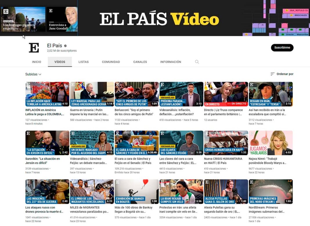 El País se ha colocado como una de las cabeceras europeas con más seguidores en Youtube, al superar los dos millones. El País empezó a trabajar la estrategia en YouTube en 2015, y en 2020 lograba el primer millón de seguidores. Dos años después el número de seguidores se ha duplicado.