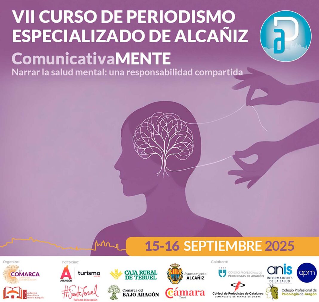 Más de treinta expertos en comunicación, psicología, salud y educación participarán los días 15 y 16 de septiembre en la séptima edición del Curso Nacional de Comunicación y Periodismo Especializado de Alcañiz, que este año abordará los retos informativos en torno a la salud mental bajo el lema Comunicativa-MENTE: narrar la salud mental, una responsabilidad compartida. La presentación oficial del evento ha tenido lugar este martes en la sede del Colegio Profesional de Periodistas de Aragón.
