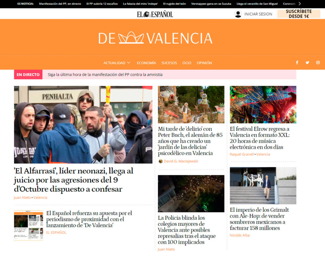 El Español ha anunciado el lanzamiento de «De Valencia», una nueva edición enfocada en la información local y provincial de la Comunitat Valenciana. Este lanzamiento se produce en un territorio donde, según datos del medidor oficial GFK de agosto pasado, el periódico que dirige Pedro J. Ramírez ya cuenta con una audiencia de 1,8 millones de usuarios únicos.