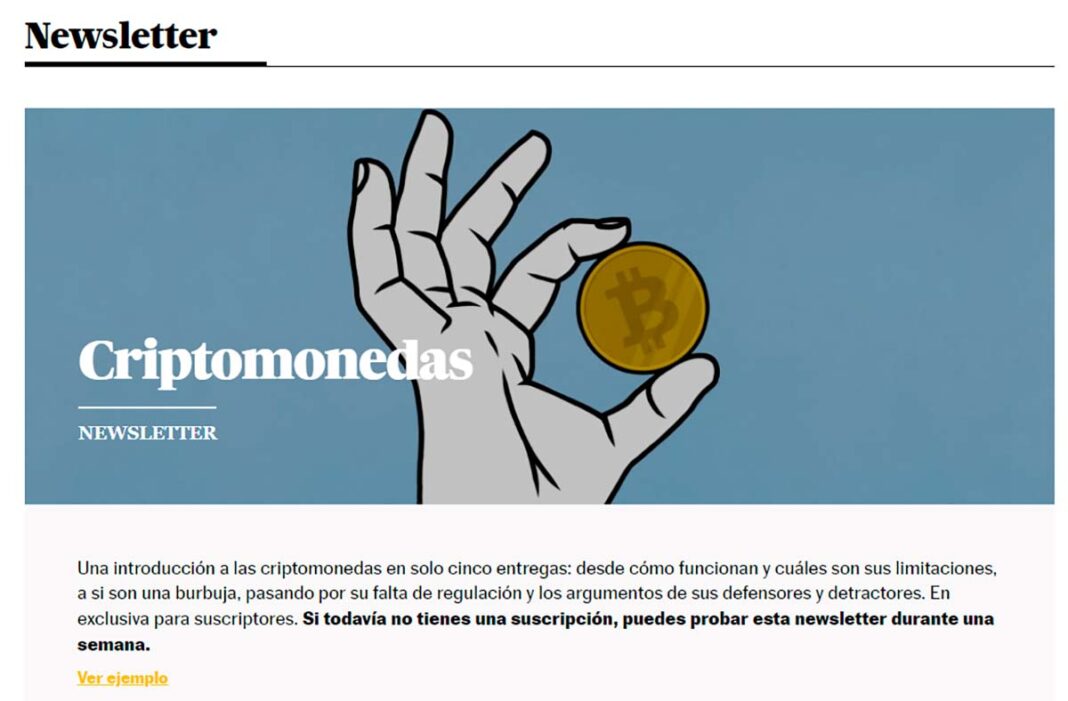 Se trata de una newsletter que sólo tendrá cinco envíos para las personas que se registren. Cada uno de los envíos estará centrado en un tema: su popularidad, la discusión sobre si son o no una burbuja, su regulación, su lado emocional y sus perspectivas de futuro.