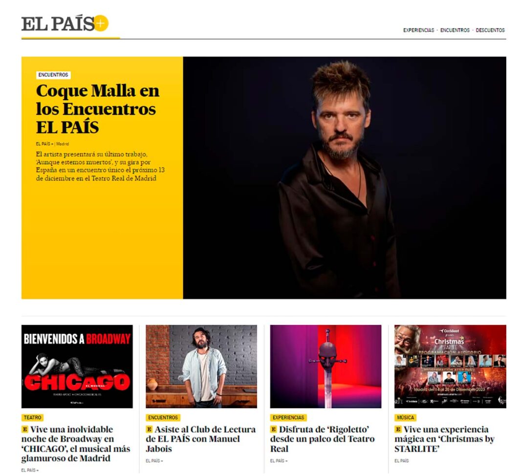 El País ha presentado la nueva plataforma web El País+, diseñada para ofrecer actividades y experiencias culturales a sus suscriptores. Con un equipo compuesto por María Sánchez, Elena Blázquez, Raquel Martínez y Aitana Regueiro, el programa prevé culminar el año 2023 con más de 450 propuestas, incluyendo 40 encuentros con artistas y periodistas del diario.