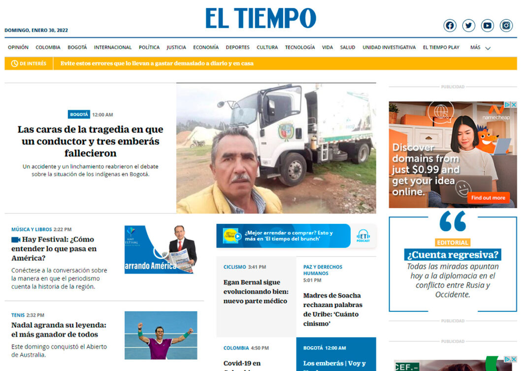 Andrés Mompotes, director general de El Tiempo, señaló que “llegar a los 100.000 suscriptores digitales activos representa una enorme responsabilidad para el gran equipo de editores y periodistas que hacen su trabajo con la vocación de informar, analizar y contribuir con contenidos que ayuden a contextualizar los hechos noticiosos”.