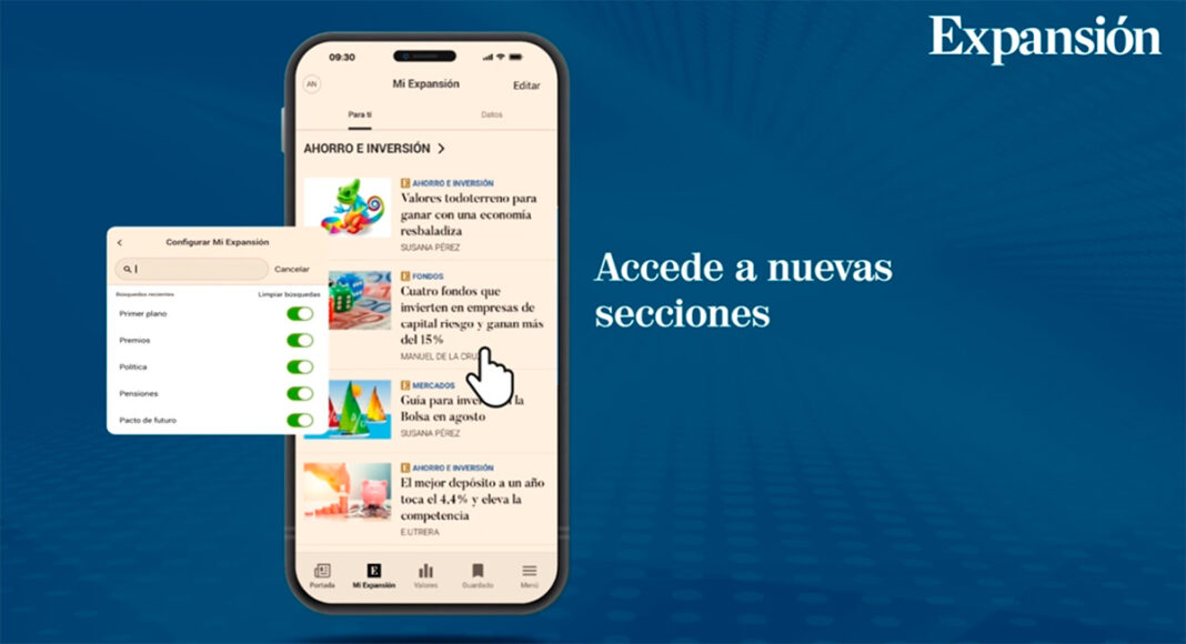 El periódico económico Expansión ha anunciado el lanzamiento de su nueva aplicación para dispositivos móviles. La actualización ya está disponible en sistemas operativos iOS y Android y ofrece herramientas específicamente diseñadas para inversores.