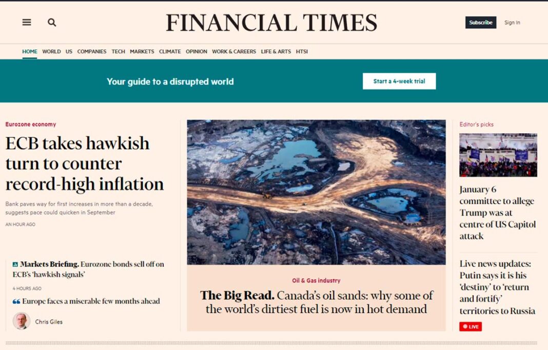 - Ver el resumen de myFT: una vista personalizada de las historias de FT que más interesan al suscriptor.