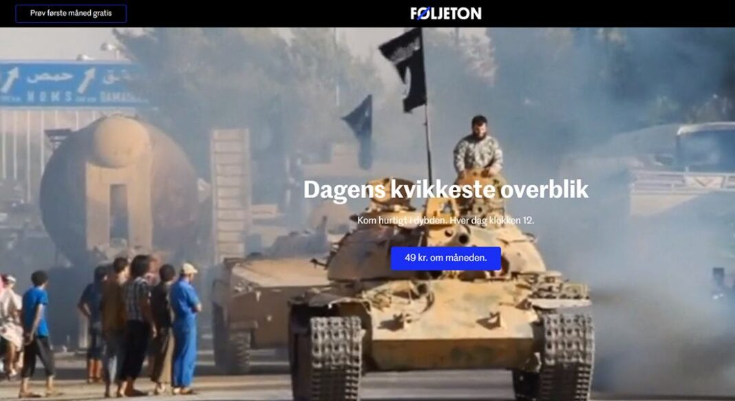 La empresa periodística danesa Føljeton no publica un periódico, ni digital ni de papel; ni una revista. Sólo publica una newsletter cada día. Y de pago. Cuesta 49 coronas danesas al mes (6,58 euros), aunque el primer mes es gratis, de prueba, pero hay que dar la tarjeta de crédito y automáticamente se renueva la suscripción al finalizar el mes de prueba.