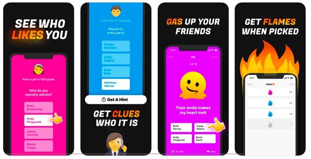 Gas (de momento sólo disponible para iPhone e iPad) hace a los adolescentes preguntas de opción múltiple sobre sus compañeros del centro escolar al que pertenecen, permitiéndoles elegir calificativos amables que definan a estos compañeros, como en los típicos anuarios.