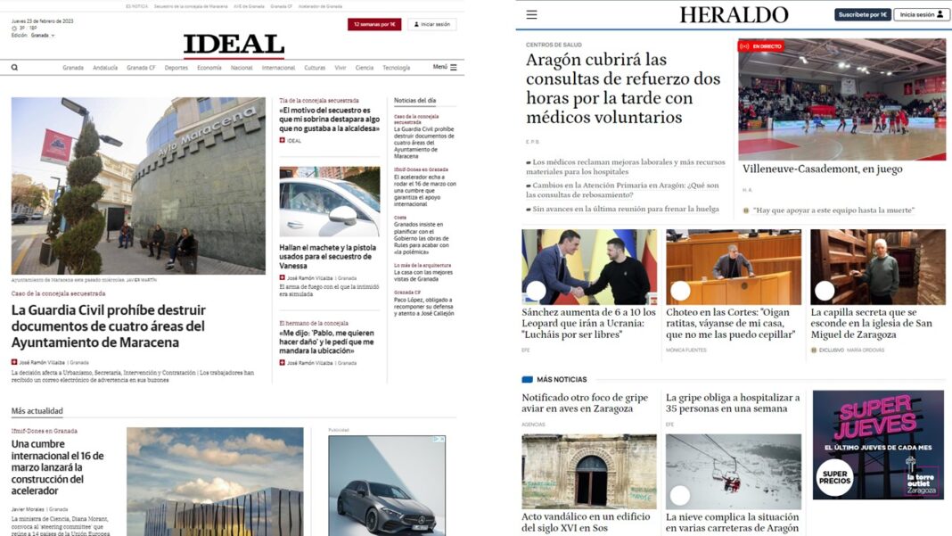 Dos destacados periódicos locales han coincidido en el tiempo en un rediseño web: Heraldo de Aragón (Henneo) e Ideal, de Granada (Vocento). Heraldo de Aragón ha acometido un rediseñado de la web para adaptarse a las nuevas necesidades informativas y a los hábitos de los lectores, centrándose en hacerla «más ágil, sencilla y visual».