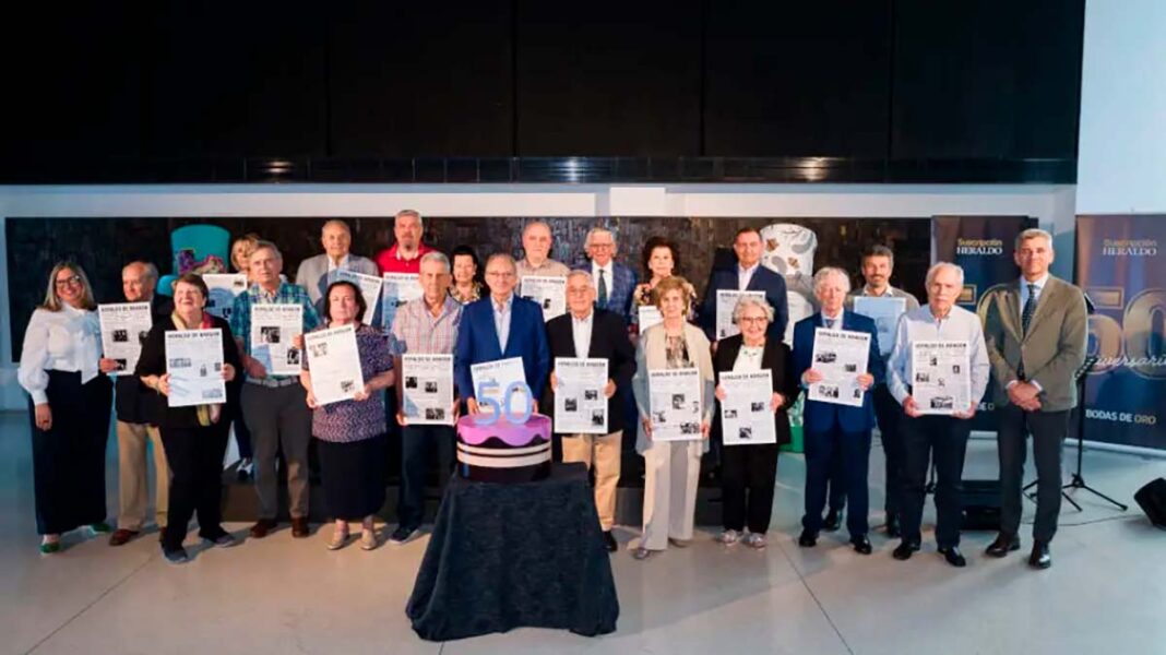 Heraldo de Aragón ha celebrado un acto de reconocimiento para los suscriptores que han recibido el diario durante 50 años consecutivos. La ceremonia tuvo lugar en la rotativa de la empresa en Villanueva de Gállego, con la presencia de Fernando de Yarza Mompeón, vicepresidente editor del diario, Mikel Iturbe, director del periódico, y Eliseo Lafuente, director general de Medios de Henneo.