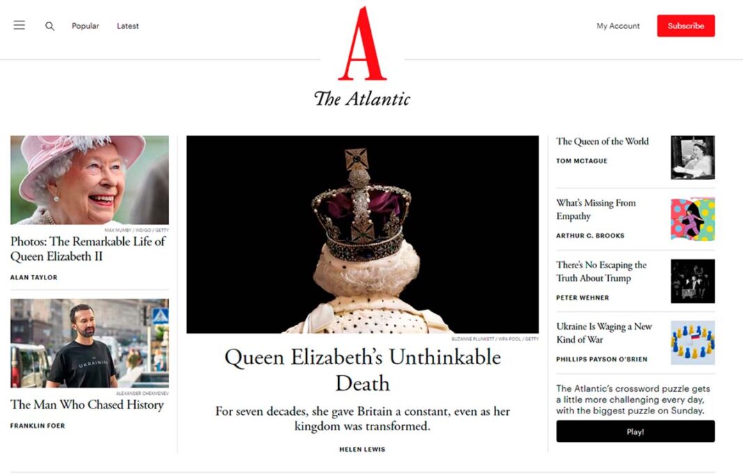 - Valor adicional. Muchos periódicos son parecidos. Ofrecer algo que se salga de la rutina informativa, política, económica y social, puede ser diferencial. En el caso de The Atlantic, se apela a que está construyendo la mayor colección de escritores en idioma inglés. «Anne Applebaum, Caitlin Flanagan, Sophie Gilbert, Vann R. Newkirk II, George Packer, Jennifer Senior, Adam Serwer, Sarah Zhang, podría enumerar docenas de otras personas. Una sola suscripción le da acceso, tanto en forma impresa como en línea, a los mejores escritos en Estados Unidos sobre política, ciencia, salud, cultura, libros, tecnología y mucho más», indican en la campaña de suscripción.