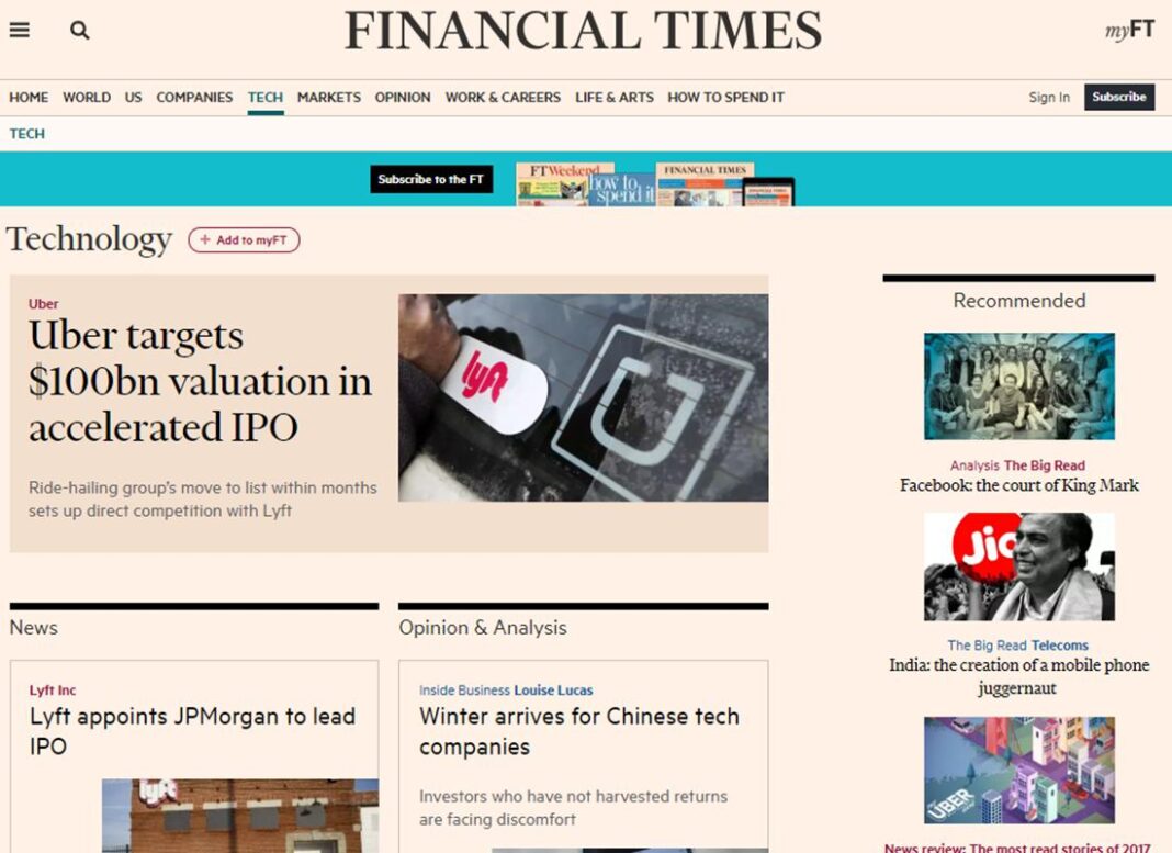 La página de inicio de FT y la aplicación web otorgan ya desde el día 1 más peso a los temas que se tratan en la sección de tecnología, dirigida por Malcolm Moore.