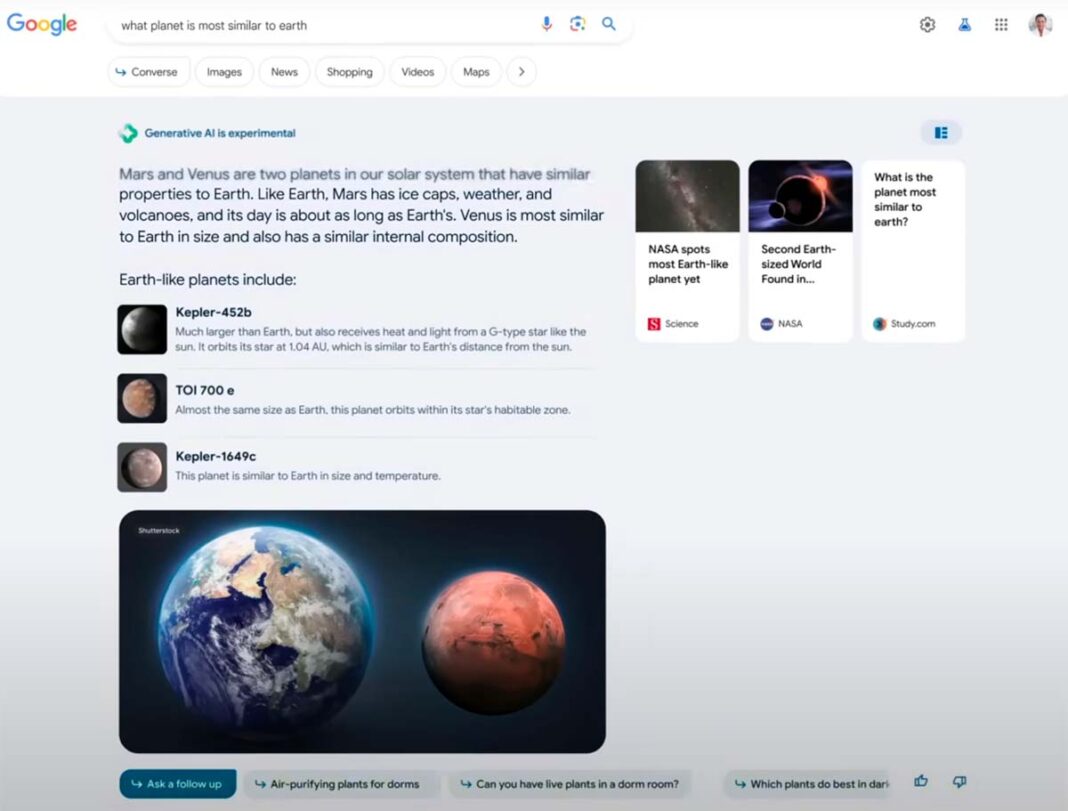 La Experiencia Generativa de Búsqueda (SGE, por sus siglas en inglés de Search Generative Experience), por la cual Google planea situar respuestas generadas por IA en la parte superior de algunas páginas de resultados de búsqueda, podría desincentivar a los usuarios a visitar otros sitios para obtener más información, incrementando su dependencia de la plataforma Google.