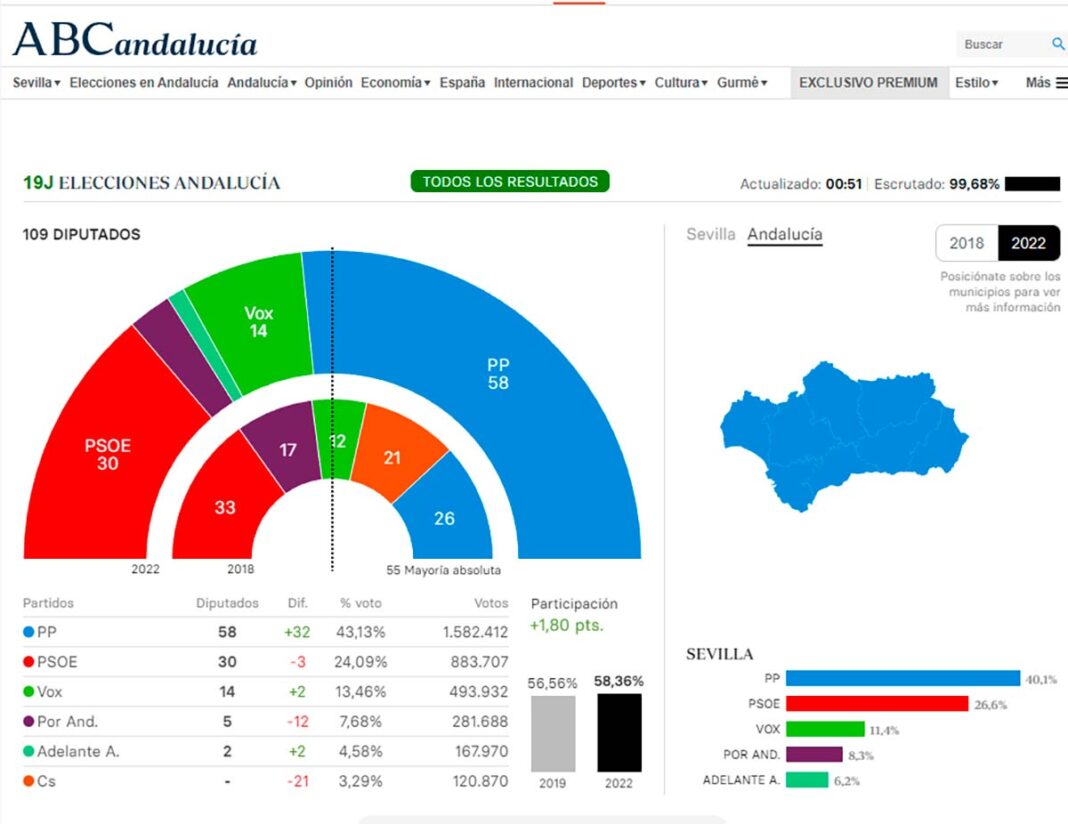 Con respecto al mes de las elecciones y en base a los datos de consumo recogidos censalmente por Comscore, se observa que el día 19 de junio 2022, el interés por los contenidos informativos de estos medios digitales, se dispara.