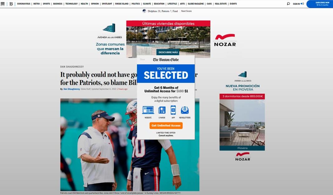 O el Boston Globe, que ofrece suscripciones a algunos lectores concretos, en gran parte en Europa, por un único dólar para seis meses. en lugar de los 180 dólares que costaría la suscripción.