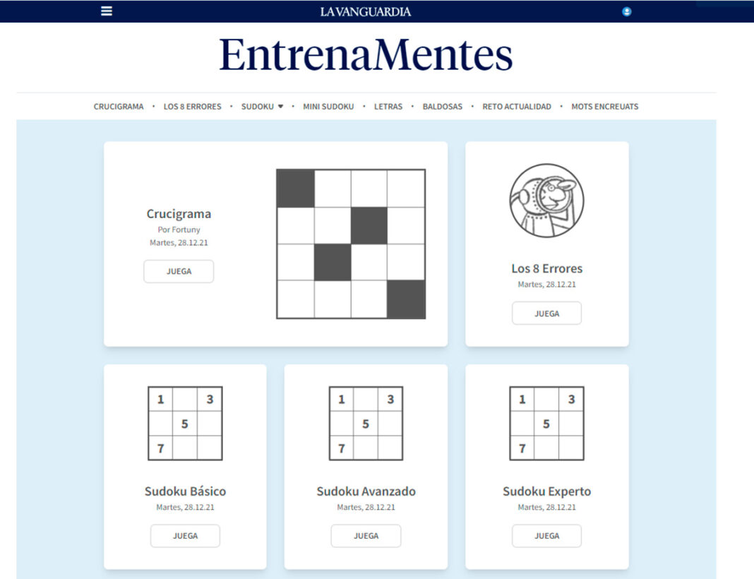 La Vanguardia, por su parte, en esta misma línea, acaba de estrenar una nueva sección de pasatiempos, llamada «Entrenamentes».