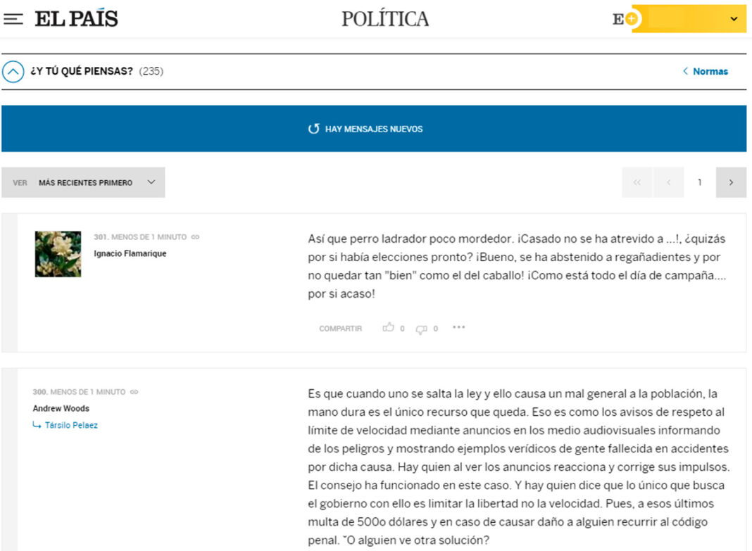 En realidad ha sido una petición de sus propios lectores. La pasada semana el periódico pidió a sus suscriptores que participaran en una votación vinculante sobre dos cambios en los comentarios ante los problemas que estaban detectando en sus foros, y que son comunes a casi todos los medios: acoso a los participantes, insultos, ataques organizados de bots… «Una versión en pequeño de los mismos problemas que están sufriendo las redes sociales en todo el mundo, agravados por la polarización que ha provocado la pandemia del coronavirus», apunta su director, Ignacio Escolar.