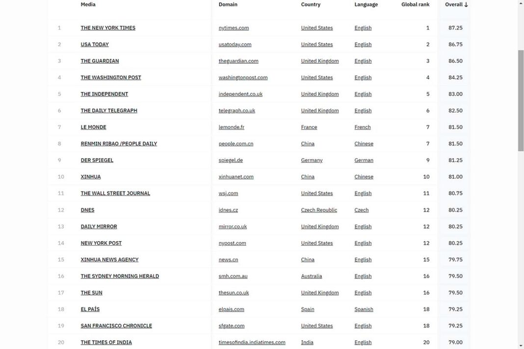 El próximo 9 de enero se lanza un nuevo servicio que clasifica a los medios de comunicación en función de su reputación digital. El ranking está impulsado por SCImago e incluye de partida a más de 4.500 medios de comunicación en más de 90 idiomas, de más de 200 países.