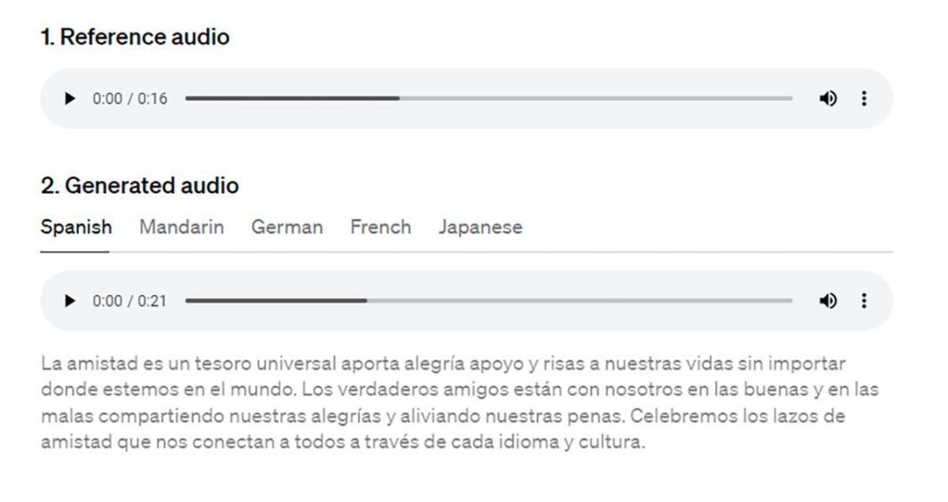 Aunque OpenAI no lo mencionó explícitamente, entre las posibilidades para los anunciantes se incluye la creación de voiceovers para anuncios de televisión o completos spots de radio, así como contenido para redes sociales y nuevas unidades de publicidad para medios de búsqueda, pagados u orgánicos. Además, abre las puertas a la traducción de contenidos a diversos idiomas con voces que semejan nativas.