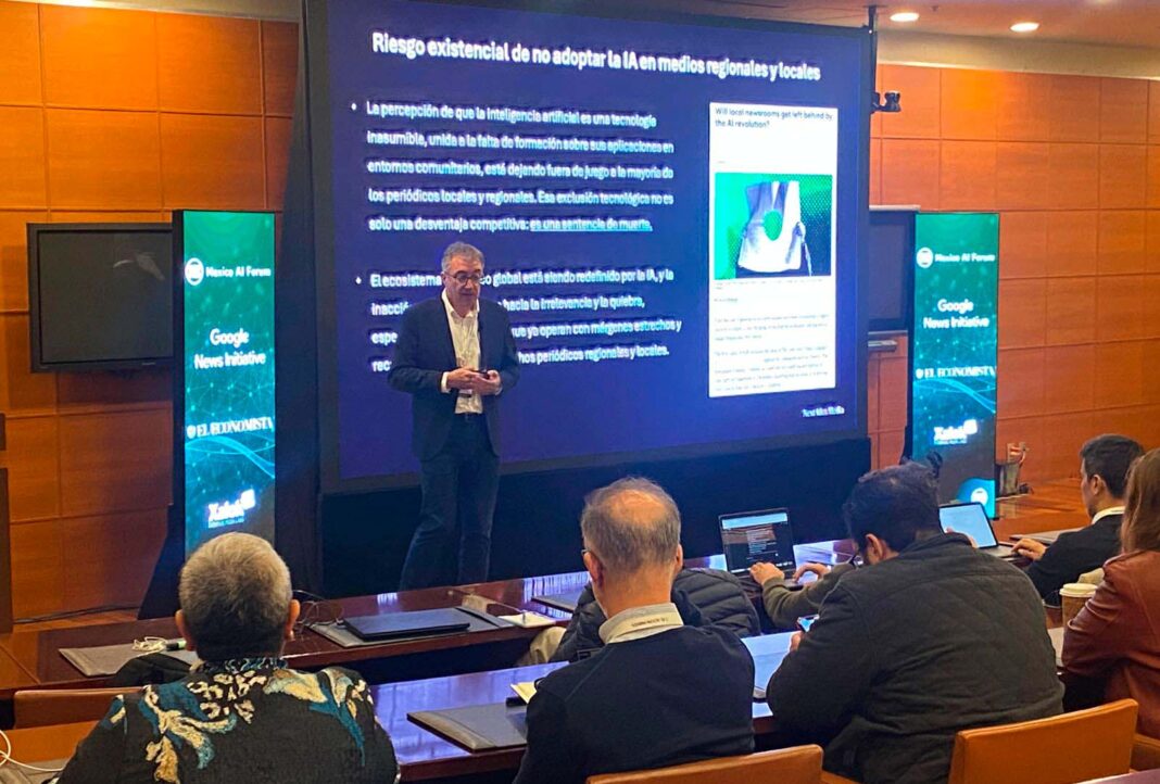 El director editorial del Laboratorio de Periodismo de la Fundación Luca de Tena y CEO de Next Idea Media, Lluís Cucarella, presentó hace unos días en el México IA Forum 2025 de WAN-IFRA, celebrado en Ciudad de México, la ponencia «Inteligencia artificial en redacciones locales: cómo aprovechar sus ventajas y reforzar la confianza del público». El evento reunió a expertos internacionales y representantes clave del sector periodístico de España y Latinoamérica.