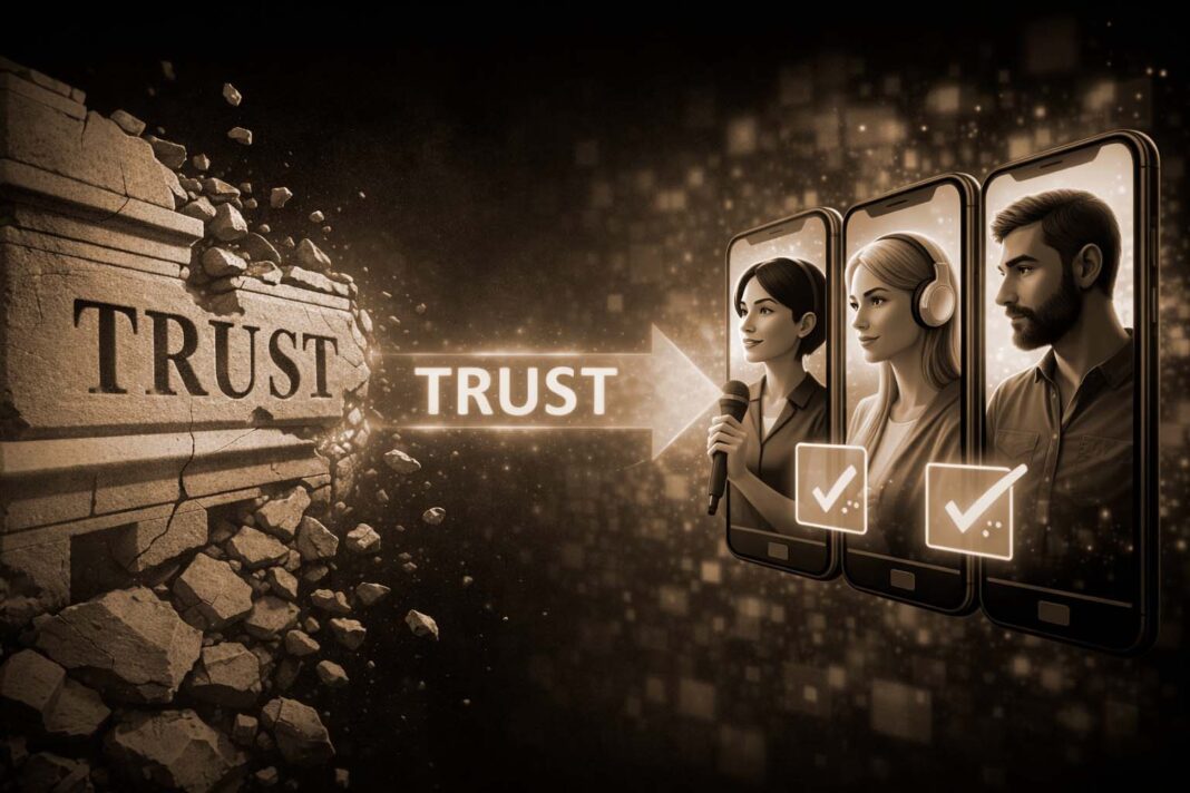 La pérdida de confianza en los medios no significa que la audiencia haya dejado de buscar información. Lo que indican los datos es algo más incómodo para la industria de los medios: la confianza ya no se deposita de forma automática en la marca, sino que se desplaza hacia voces concretas, formatos más directos y contenidos cuya procedencia resulta más fácil de identificar.