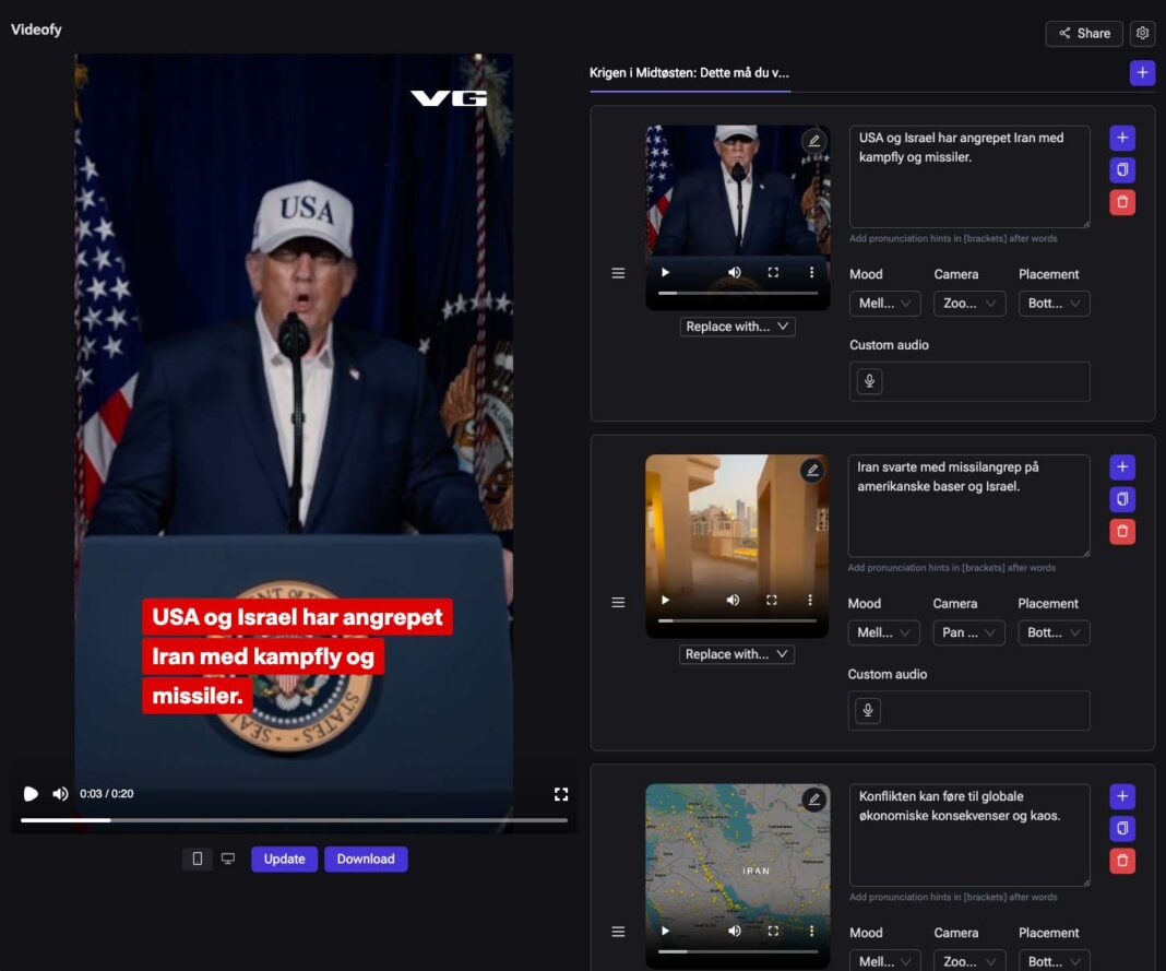 La automatización de la producción de vídeo a partir de contenidos escritos ha dado un nuevo paso con la decisión de Schibsted de publicar como software de código abierto su herramienta Videofy, un sistema que permite transformar artículos periodísticos en piezas audiovisuales listas para su difusión en cuestión de minutos y que hasta ahora se utilizaba de forma interna en varias redacciones del grupo, tras haber sido desarrollada inicialmente en el medio noruego VG.