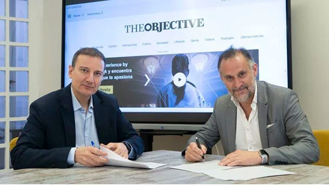 La firma del acuerdo se produjo en Madrid, en la sede de ‘The Objective’, con la presencia de Antoni Martorell, editor de ‘mallorcadiario.com’, y Álvaro Nieto, director de ‘The Objective’.