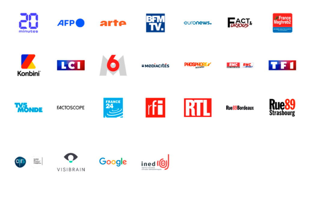 La coalición “Objectif Désinfox” reúne a 20 Minutos, AFP, Arte, BFMTV, Euronews, Fact & Furious, FactoScope, France24, Konbini, LCI, M6, Mediacités, Phosphore, Rue89 Bordeaux, Rue89 Strasbourg, RFI, radio Francia Magreb 2, RMC, RTL, TF1 y TV5 Monde. El Instituto Nacional de Estudios Demográficos (INED) también se asocia a esta coalición “como socio académico”.