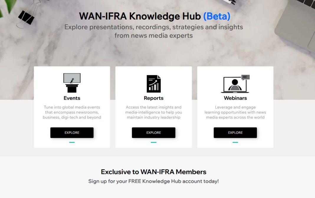 La Asociación Mundial de Editores de Noticias (WAN-IFRA) ha presentado el Knowledge Hub, una nueva plataforma destinada a proporcionar acceso centralizado a recursos exclusivos para sus miembros. El lanzamiento, en fase beta, ofrece contenidos actualizados y herramientas diseñadas para apoyar a los profesionales de los medios de comunicación en diferentes áreas.