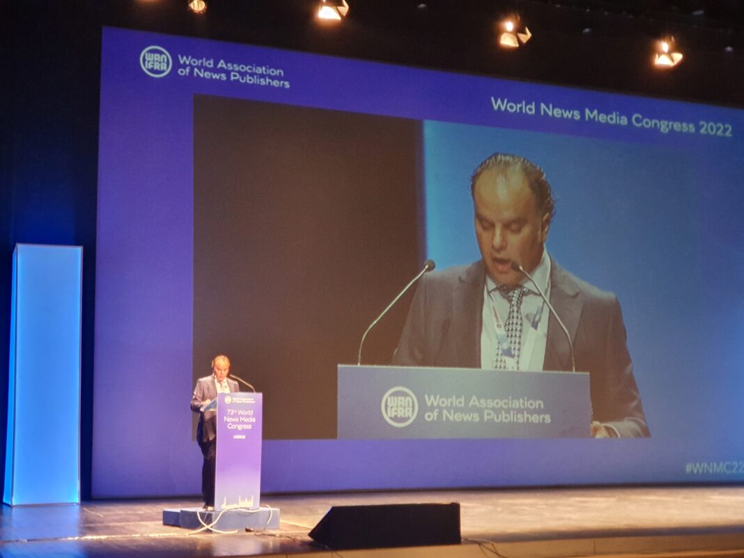 La presentación a cargo de Fernando de Yarza López-Madrazo, presidente de Henneo y presidente de WAN-IFRA, da inicio hoy en Zaragoza al congreso mundial de medios de WAN-IFRA, que se prolongará hasta el próximo viernes, y que reunirá a centenares de profesionales de los medios de comunicación y de empresas de servicios de información y tecnología de la información.